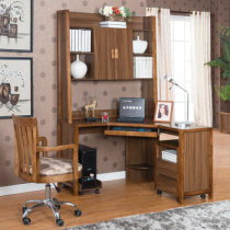 中格 实木电脑桌 电脑桌台式家用转角电脑桌书柜组合书桌写字台